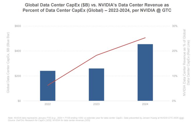 其中,英伟达吃下了数据中心预算的「大头」,众多初创公司依赖英伟达的硬件和软件栈加速产品开发。到 2024 年,每 4 美元数据中心投资中,就有 1 美元进了英伟达的口袋,也让其成为了这波 AI 浪潮的最大赢家。