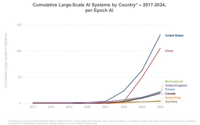 相比之下,英国、法国、德国、加拿大等国的累计数量尚在 10-20 个区间,跨国协作模型开发增长曲线也比较缓。
