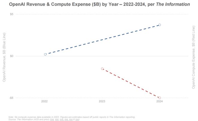 2022–2024 年间,Open AI 收入大幅上升,算力支出显著下降龙8long8,显示其 AI 商业化路径逐渐清晰(如 ChatGPT Plus、API、企业订阅等)。
